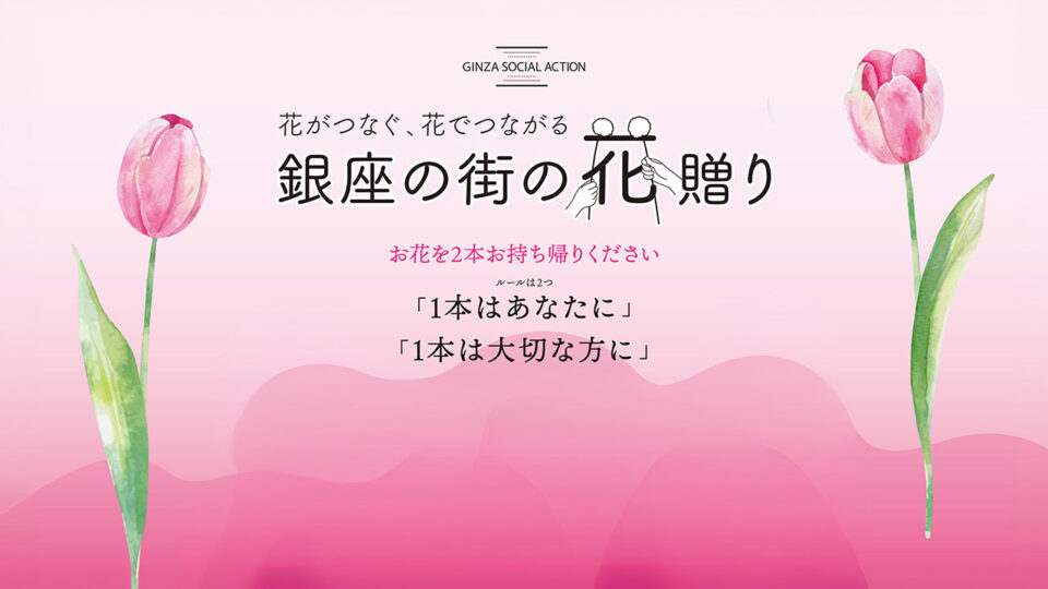銀座の街の社会貢献活動花をもらう喜び・贈る喜びをあなたへ! 銀座の街の社会貢献活動(GINZA SOCIAL ACTION)の一環として「銀座の街の花贈り」イベントを2026年3月15日(日)に数寄屋橋公園にて開催いたします。なお、3月14日(土)にも関連イベントを予定しております。 イベン...