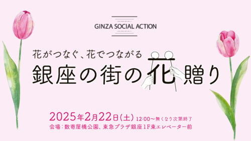 銀座から発信する社会貢献活動花をもらう喜び・贈る喜びをあなたへ! 〜廃棄花の減少に向けて〜 「一度も出荷されずに廃棄されてしまうお花があります」 本イベントを通し、お花を受け取る喜び、贈る嬉しさを知っていただくこと 新鮮で美しく最後まで咲き誇るお花のある生活を体感していた...