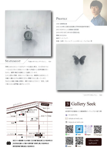 会場:Gallery Seek 出品作家:古賀充 作家来場日:7月23日(木)・24日(金) 各日13時~17時 空間・空気・時間・距離など、人が視ることができないものの表現をテーマに制作を続ける若手作家・古賀充の個展を開催いたします。 鉛筆画で細かく描写した、モノクロの世界の中に存在するモチーフの質感、色、その場の空気感までも感じられる、臨場感溢れる作品をどうぞお楽しみください。