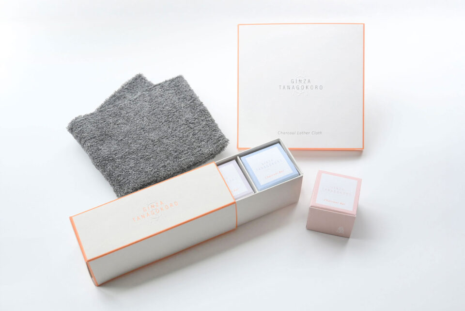 全身に使える炭石鹸のキューブサイズと、洗顔に便利な泡立てネット、ヘアターバンをセットにしたギフトです。