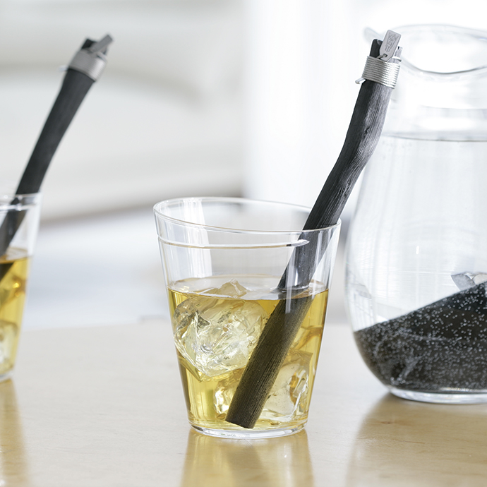 ウバメガシの枝部分を製炭した細炭で作った、ひとつずつ表情の違うマドラーです。