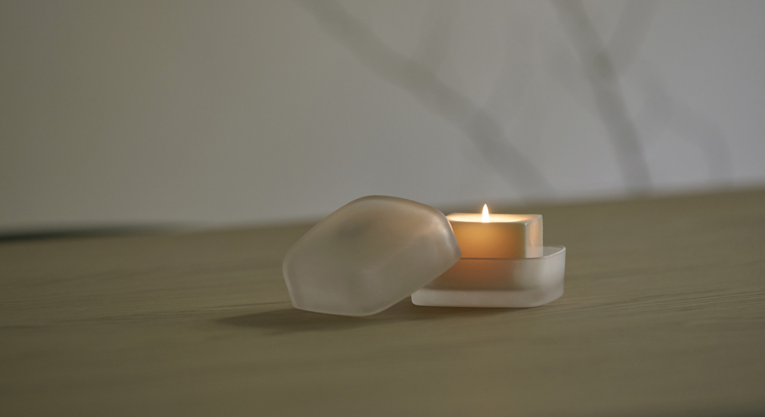 心安らぐ香りの灯を、透け感のある器でお楽しみください。