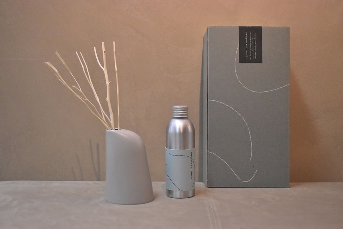 やわらかさとぬくもりを感じるグレージュの限定器に、お好きな香りを添えて。香りがより咲くように、香り立ちの良いウィードスティックを合わせた、数量限定のギフトセットを4月24日(金)より発売いたします。