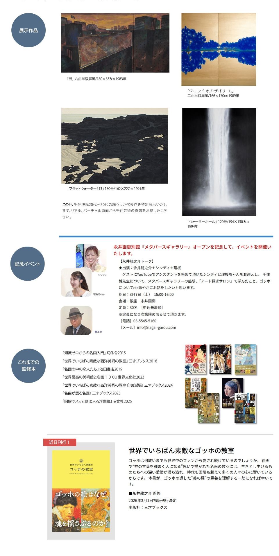 リアル、バーチャル両面から千住芸術の真髄をお楽しみ頂きたくご案内します。