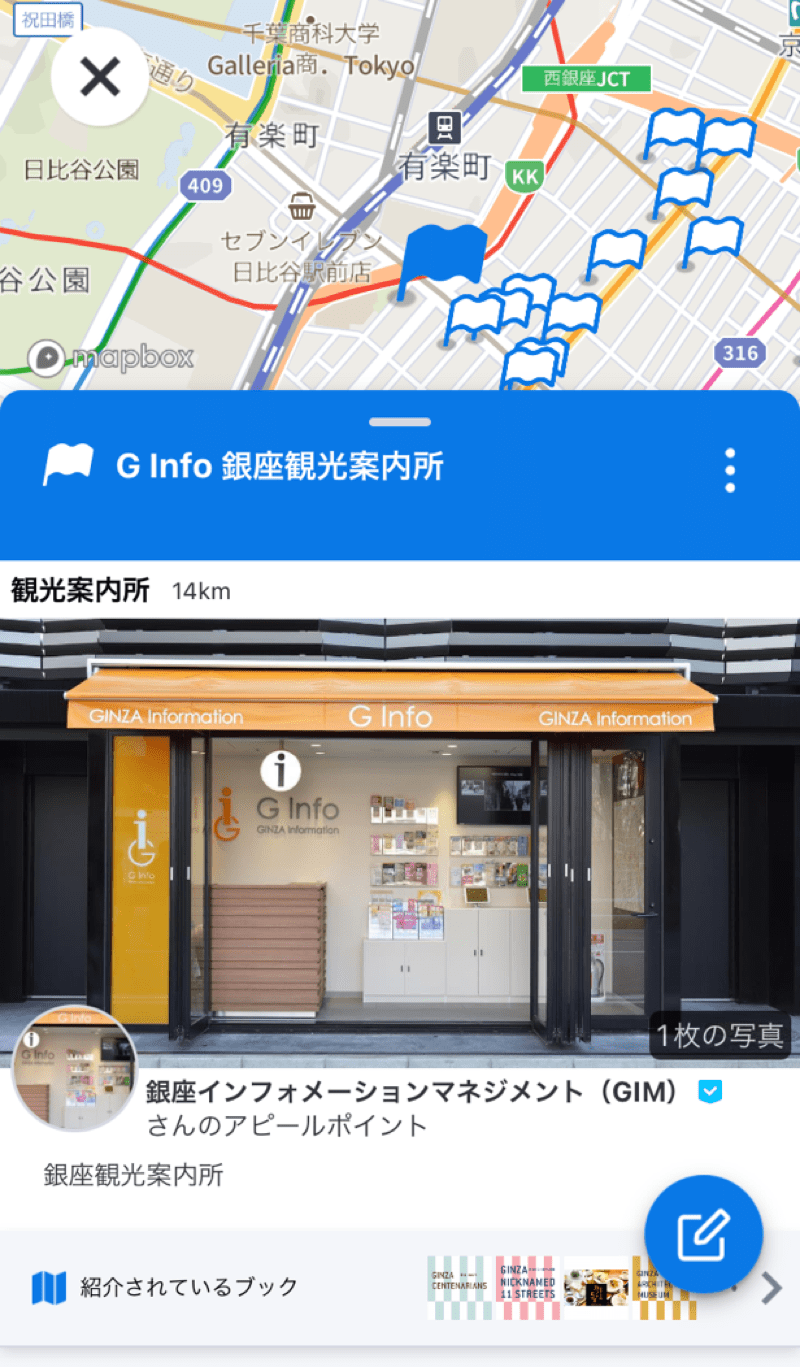 銀座を訪れた(または銀座に興味をお持ちの)利用者が、自分の現在地の付近や気になるお店などのスポット情報を地図と合わせて確認することができるようになります。
